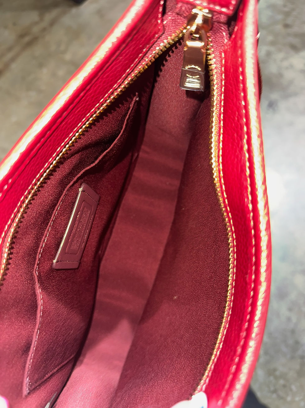Coach purse red jacquard Dempsey Top zip file